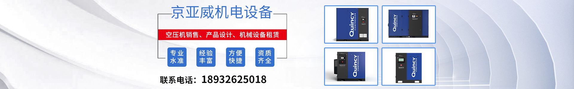 北京京亚威机电设备有限公司成立于2006年,是美国昆西空气压缩机北京授权经销商,负责昆西各型号空气压缩机在京津冀地区的销售和售后服务。我公司本着以客户需求为导向,以提高客户生产效率、降低生产成本为目标。专业的技术团队支持,快速准确地为客户进行机器维护保养,保证设备的稳定性运转率。